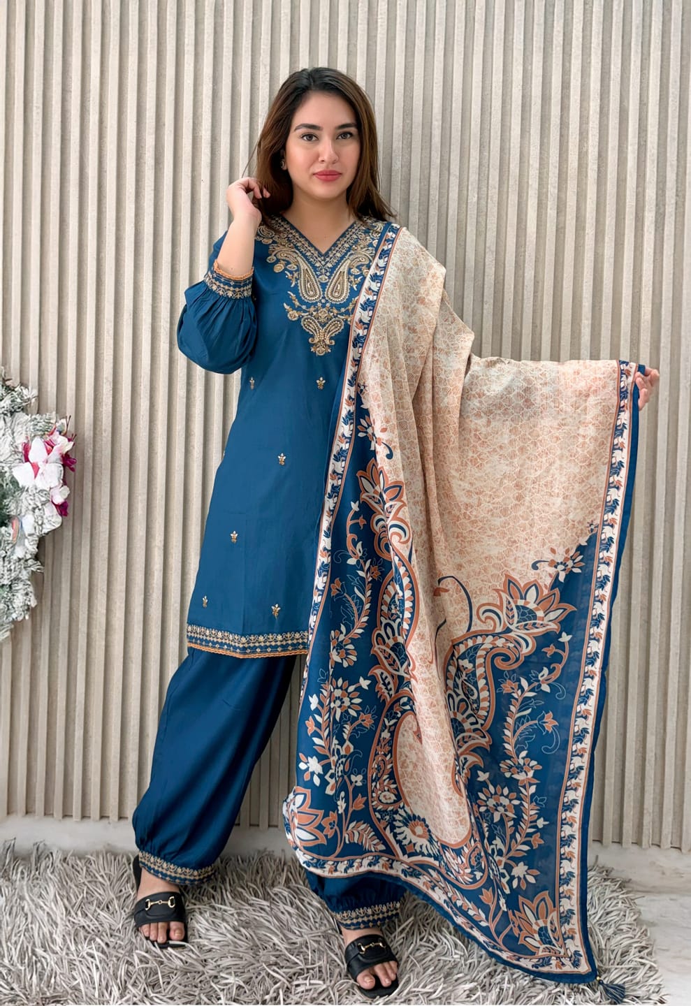 Beautiful kurta set with elegant embroidery and a classy color. Fabric is soft and comfortable, suitable for long wear. Fit is mostly true to size, though the dupatta fabric feels slightly lighter than expected. Overall, a good purchase and value for money.