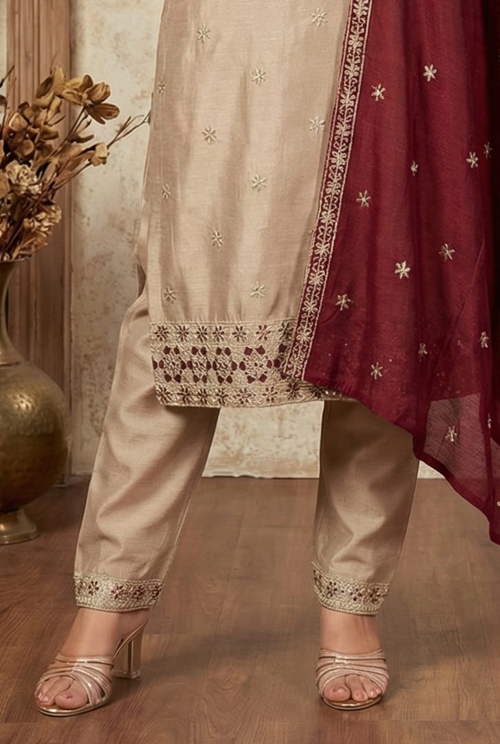 Attached Dupatta: Yes (Maroon Color)