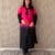 Stylish pink and black muslin kurta set featuring elegant embroidery, paired with matching pants and a graceful dupatta—perfect for festive and party wear.