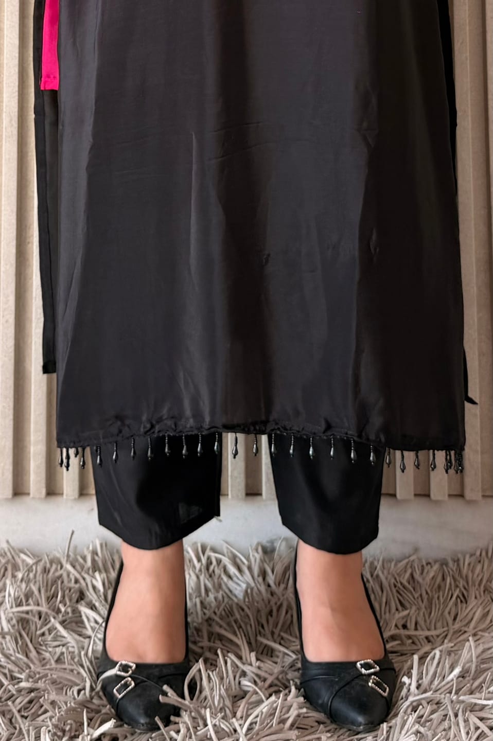 Make a bold yet elegant statement with this Pink & Black Embroidered Kurta Set from Label By Anusha. Crafted in soft and breathable muslin fabric, this outfit blends comfort with striking design.