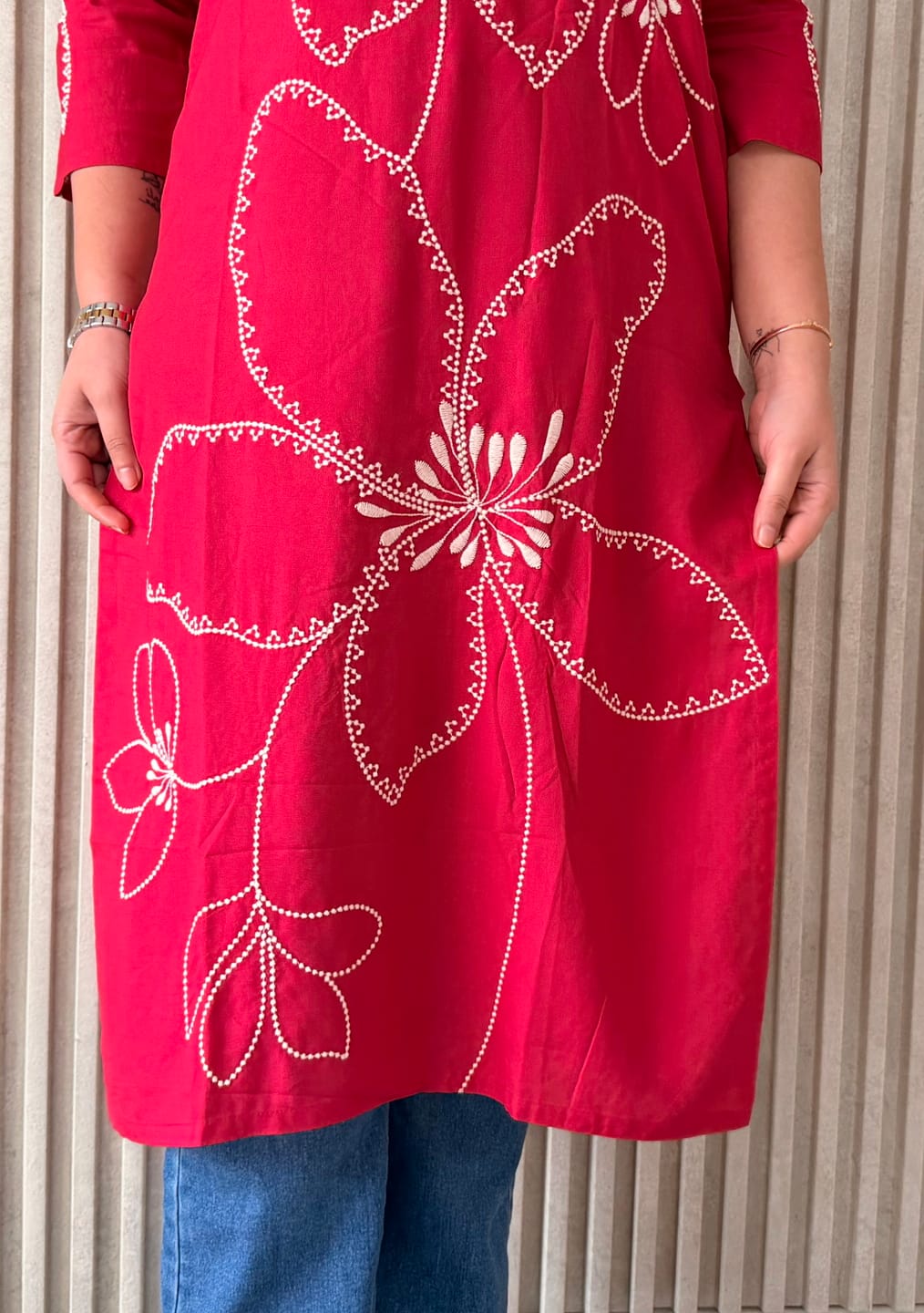 Ideal for casual wear, office wear, daily outings, and relaxed ethnic styling, this kurti blends comfort, simplicity, and handcrafted detailing.