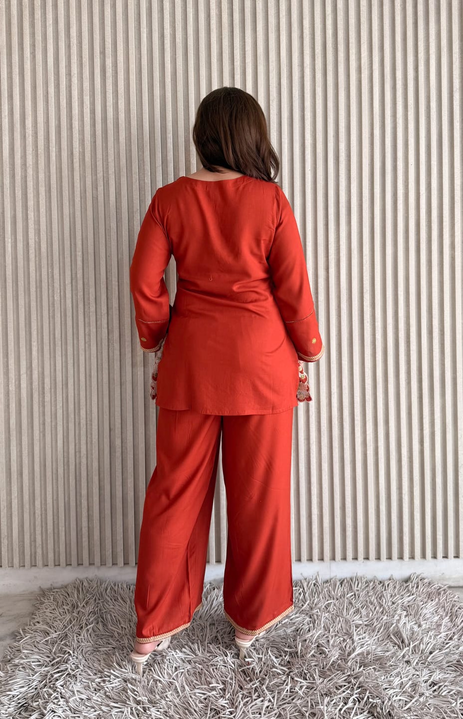 Label By Anusha | Rust Embroidered Pure Rayon Straight Co-Ord Kurta & Pant Set for Women I LBA-090