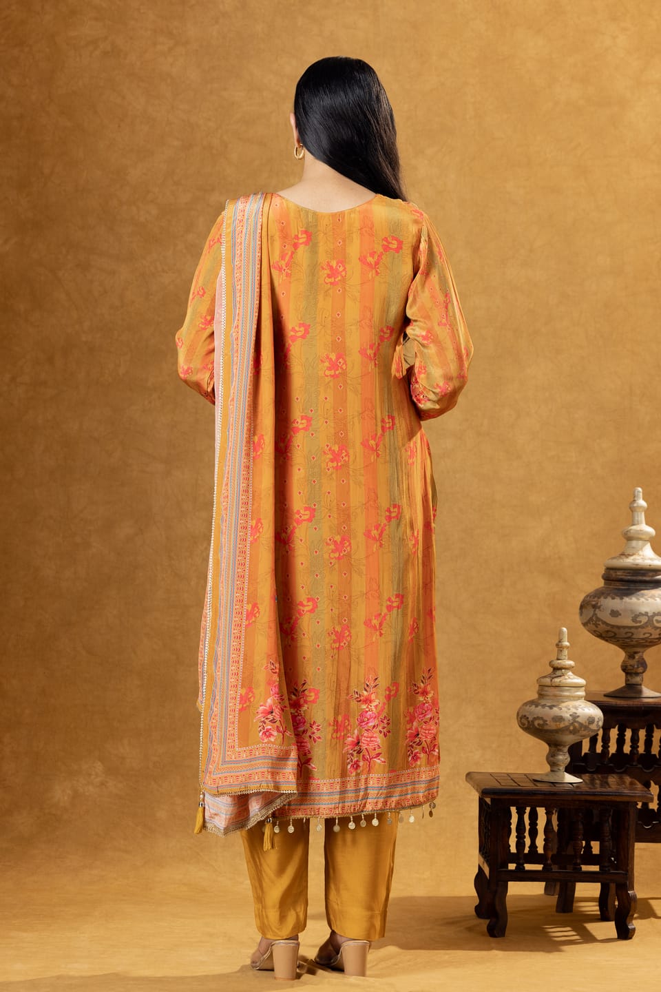 Label By Anusha Yellow Floral Printed Muslin Kurta Set with Trousers & Dupatta | LBA-106